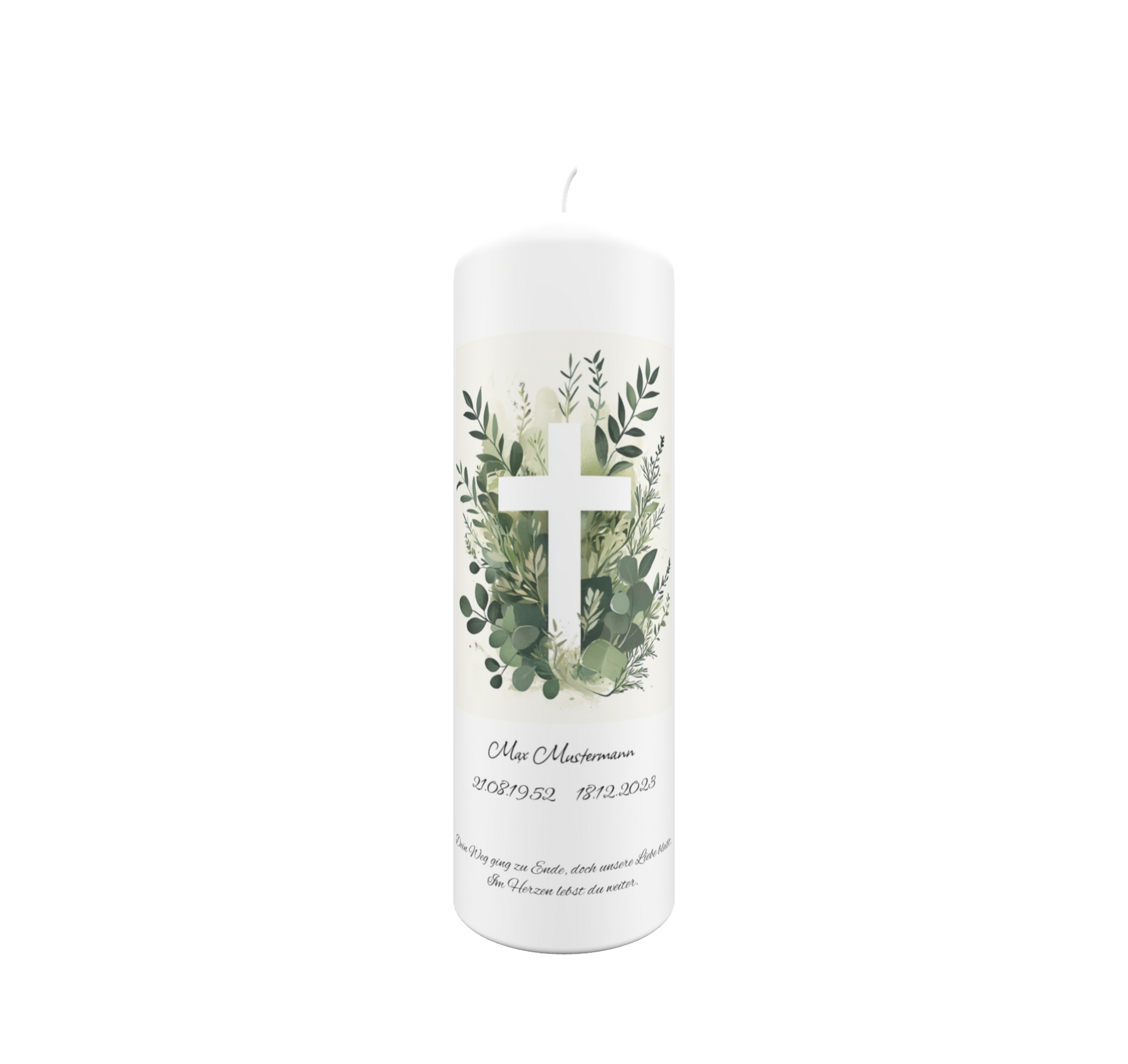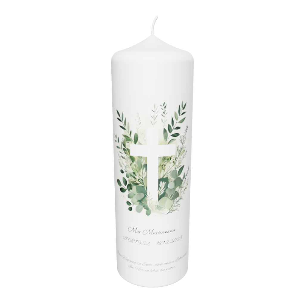 Trauerkerze mit Kreuz & Eukalyptus | Glaube, Hoffnung & Erinnerung