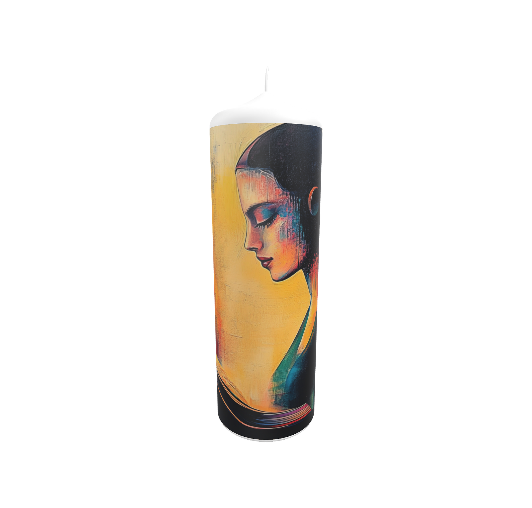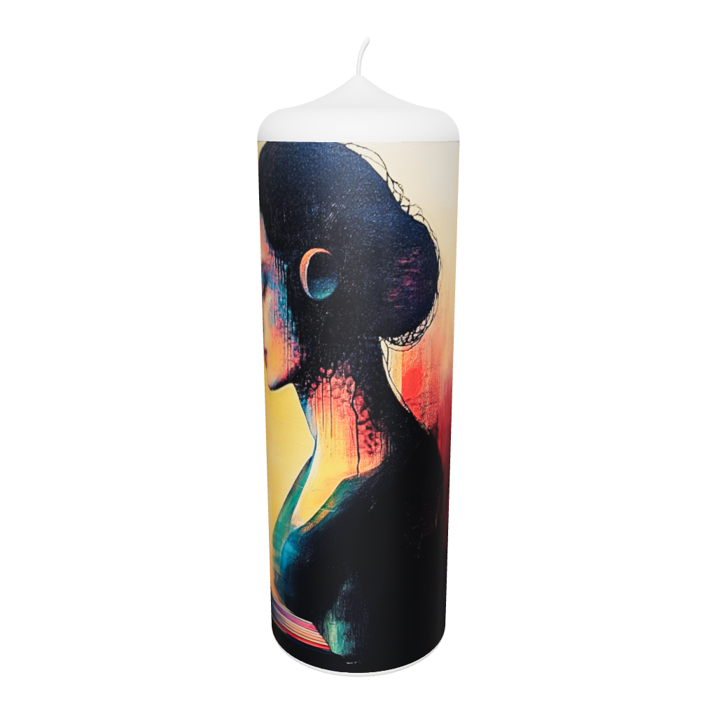 Die Künstlerkerze „Die Leserin im Farbraum“ vereint kontemplative Ruhe mit einem harmonischen Farbspiel. Eine Frau versinkt in Gedanken, umgeben von sanften Tönen aus Gelb, Rosa und Violett. Das Werk steht für innere Sammlung, Licht und Stille – ein stilles Symbol für Achtsamkeit und das Eintauchen in den eigenen Farbraum.