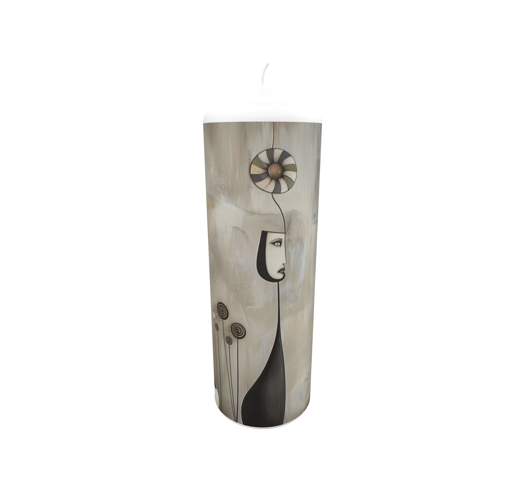 In sanften Beige- und Grautönen gehalten, verbindet das Motiv Ruhe, Struktur und organische Bewegung. Eine Kerze, die Stille und Wachstum in Einklang bringt – ideal für Momente der Besinnung und Klarheit.
