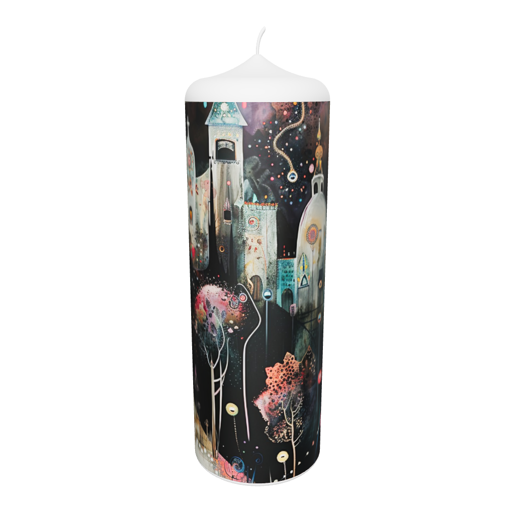 Diese Künstlerkerze ist ein Sinnbild für das Innere Leuchten der Fantasie – ein Stück Traumarchitektur in sanftem Schimmer.