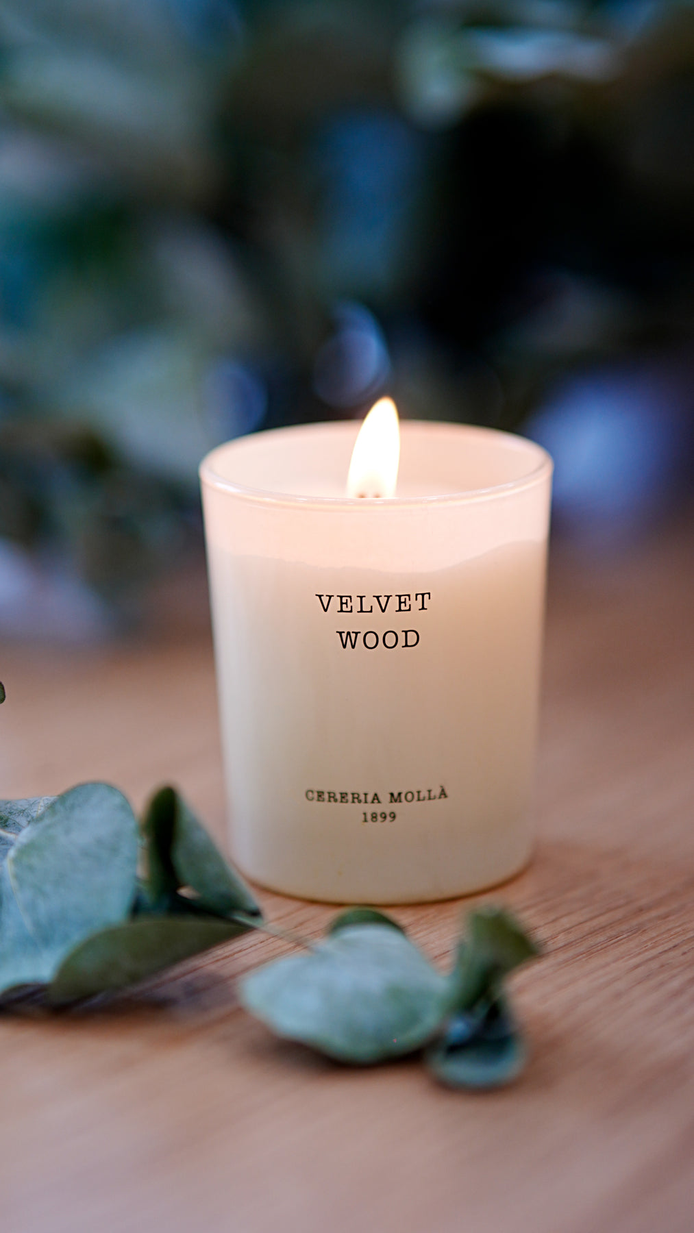 Die Velvet Wood Duftkerze von Cereria Mollá 1899 ist eine Einladung zu Ruhe und Eleganz.