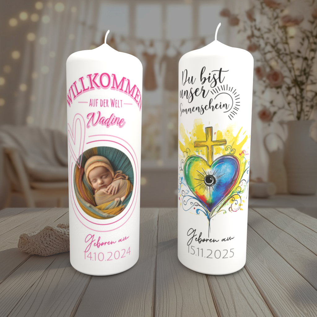 Du möchtest zur Geburt eines kleinen Wunders eine einzigartige Geburtskerze gestalten? Mit der personalisierbaren Geburtskerze von bestekerze.de schenkst du ein bleibendes Erinnerungsstück – liebevoll gestaltet, hochwertig gefertigt und sofort online sichtbar.