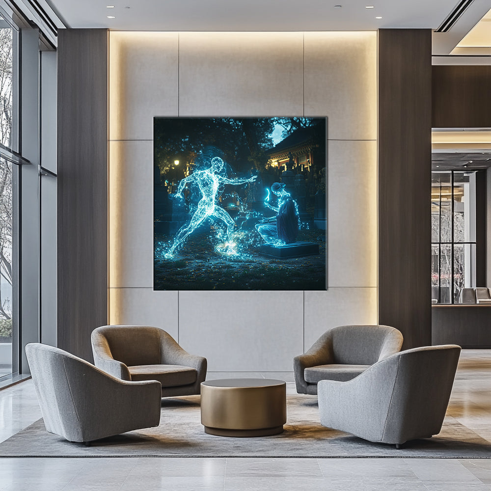 „Duell der Seelen“ zeigt den Moment der inneren Konfrontation – den Tanz zwischen Licht und Bewusstsein.