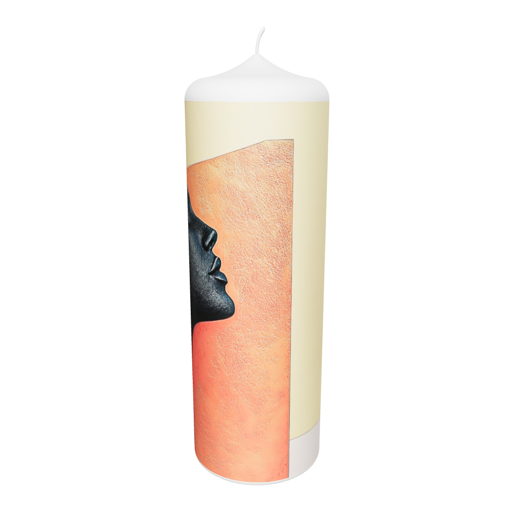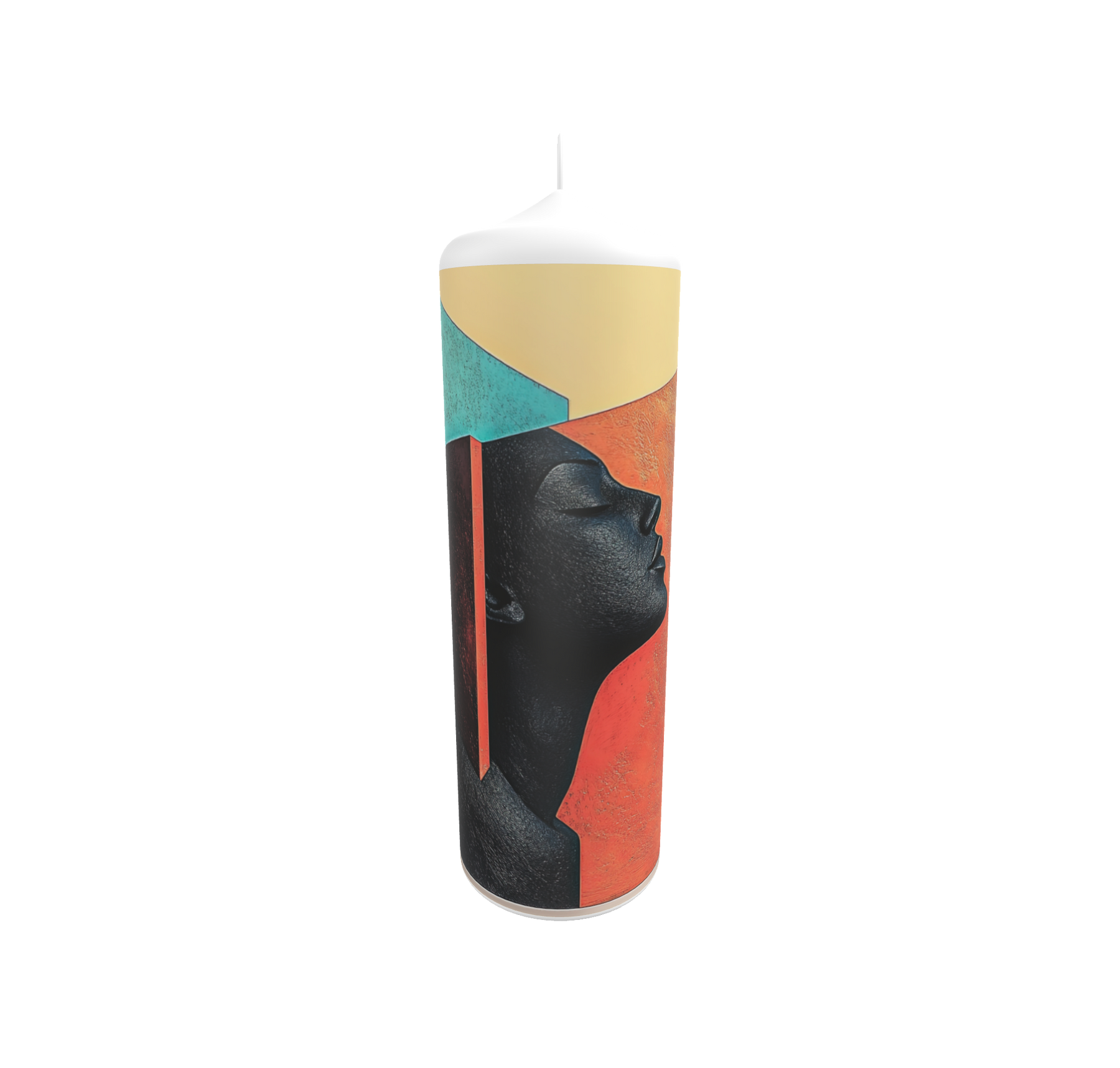 Die Künstlerkerze „Befreiung der Formen“ zeigt das Zusammenspiel von Linie, Fläche und Bewegung. Eine feminine Silhouette erhebt sich vor geometrischen Farbflächen in Rot, Blau und Beige – Symbol für Balance, Freiheit und innere Stärke. Das klare Design verbindet Struktur und Emotion zu einem modernen, ästhetischen Kunstobjekt.