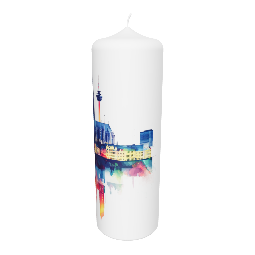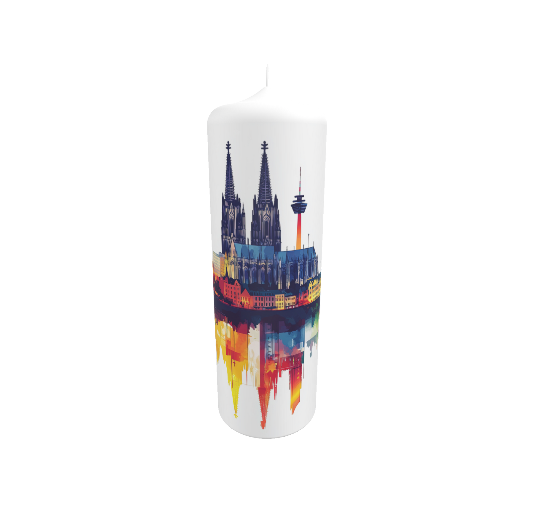 Die Künstlerkerze „Köln Kultur“ zeigt den Kölner Dom in einer modernen, farbenreichen Interpretation. Die Spiegelung und kräftigen Farben symbolisieren Energie, Vielfalt und Lebensfreude der Stadt am Rhein. Eine Hommage an Köln – kunstvoll, lebendig und mit urbanem Charakter.