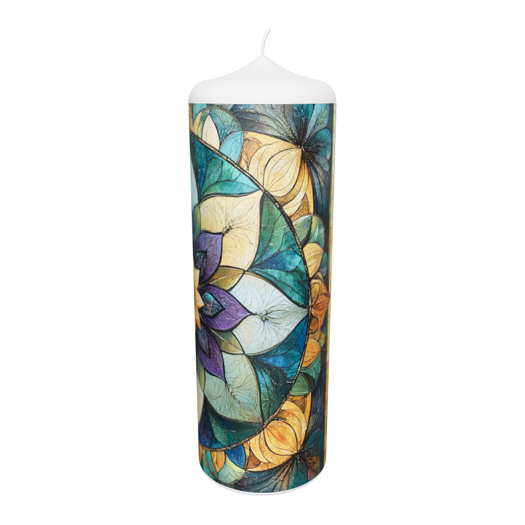 Die Künstlerkerze „Mandala Harmonie“ zeigt ein kunstvoll gestaltetes Mandala in warmen, ausgewogenen Farbtönen. Die symmetrische Komposition steht für innere Ruhe, Balance und Energie. Eine Kerze, die mit ihrer meditativen Wirkung Räume erhellt und Gelassenheit ausstrahlt – perfekt für Momente der Entspannung.