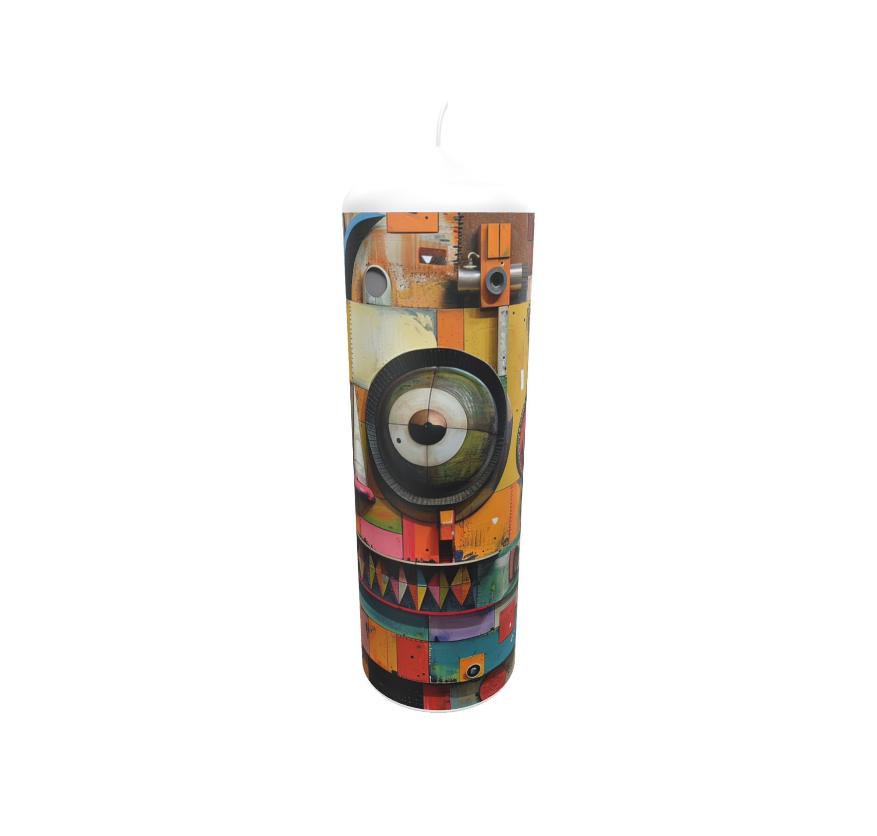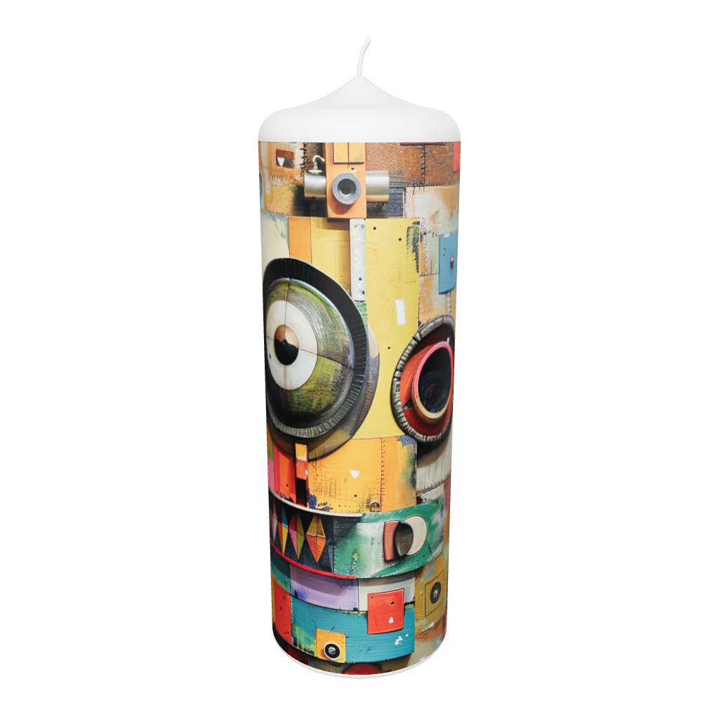 Die Künstlerkerze „Maske Mechanik“ vereint mechanische Strukturen mit einem maskenhaften Motiv. Zahnräder, Linien und Farben verschmelzen zu einer modernen Komposition zwischen Technik und Kunst. Sie steht für Präzision, Wandel und die Verbindung von Mensch und Maschine – ein markantes Design mit symbolischer Tiefe.