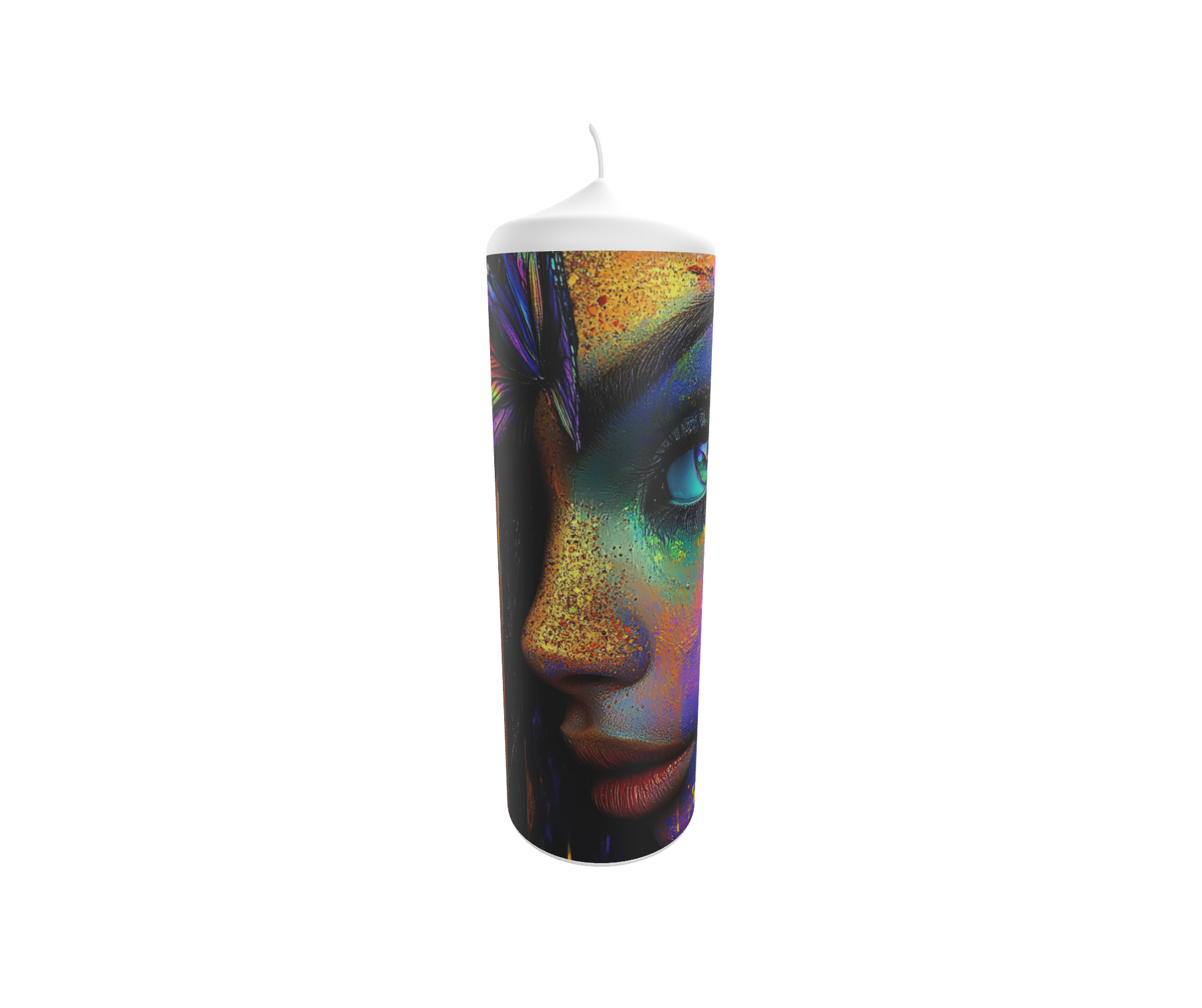 Diese Künstlerkerze steht für Transformation, Bewusstsein und das Leuchten des Individuellen – ein Sinnbild für Erkenntnis und stille Kraft.