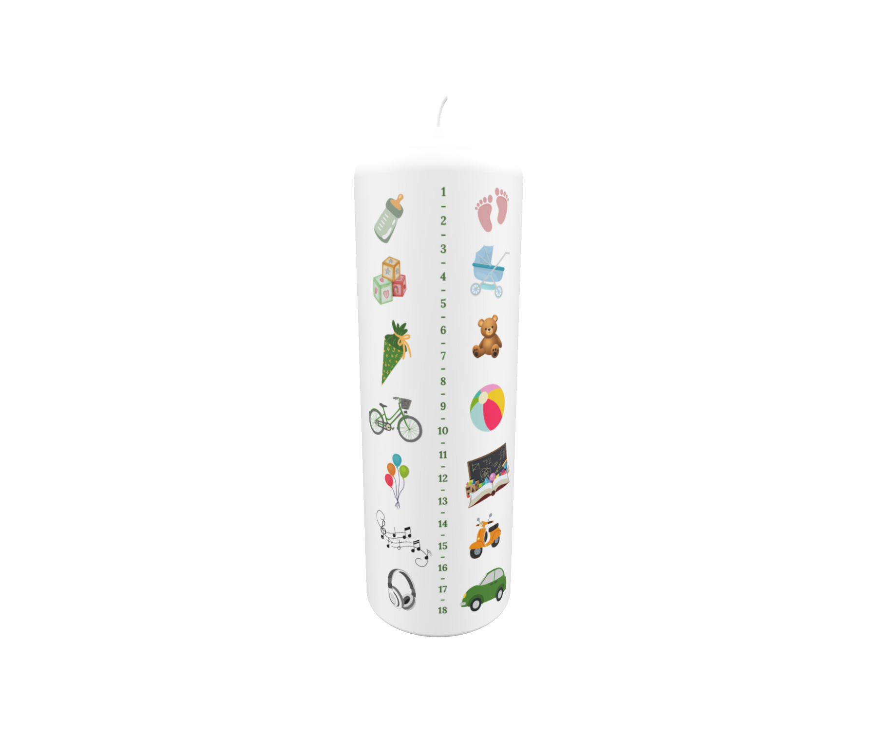 Willkommen in der Welt der Geburtskerze „Kleine Schritte – Bunt & Bewegt“ – einer Kerze, die mehr ist als nur Dekoration. Sie erzählt die Geschichte eines glücklichen, neugierigen Kindes, das voller Energie und Lebensfreude die Welt entdeckt. Farbenfrohe Symbole wie Ball, Roller, Fahrrad, Schulanfang, Musiknoten und Luftballons stehen für die unbeschwerten Momente der Kindheit – für kleine Schritte, die Großes bedeuten.