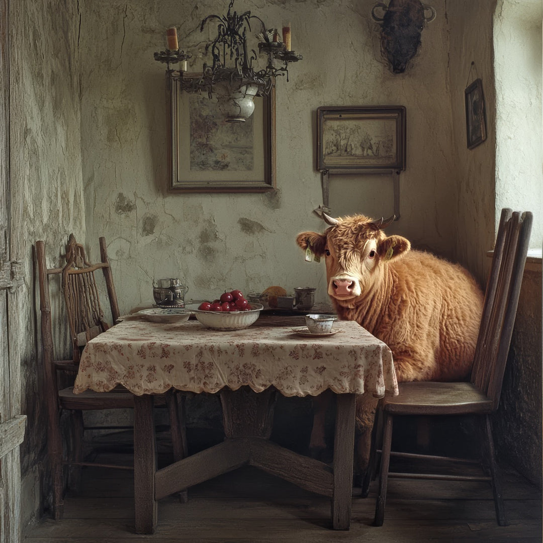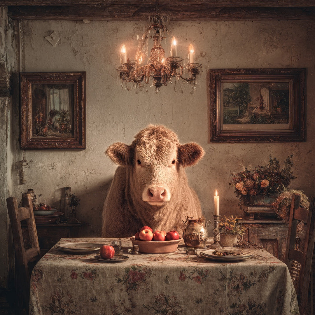 Abendtafel mit Kuh