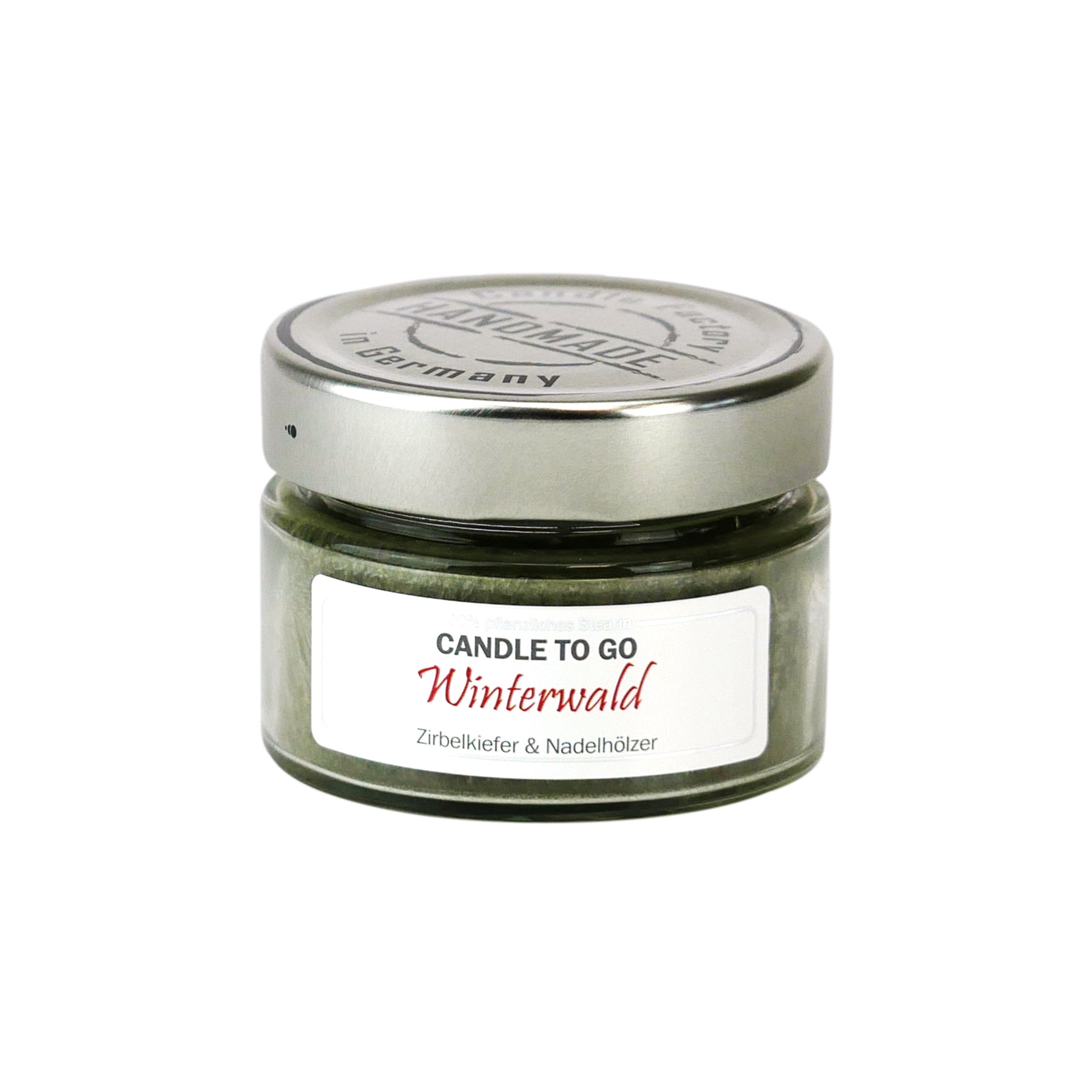 Candle Factory Candle to Go Winterwald – handgegossene Duftkerze im Glas, Zirbelkiefer & Nadelhölzer, pflanzlich, Handmade in Germany.