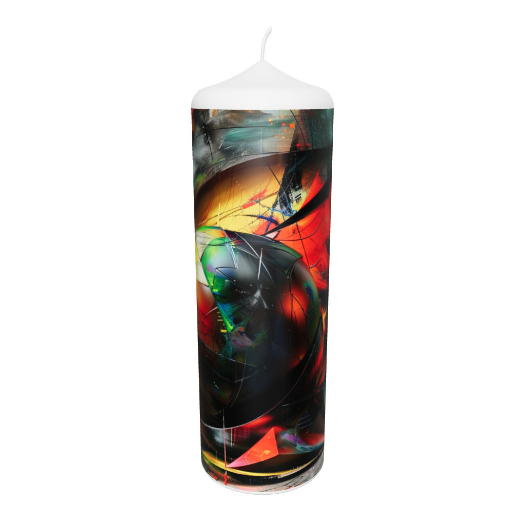 Ein modernes Kunstwerk in Wachs: Jede Kerze wird in Deutschland handgefertigt und trägt einen hochwertigen Rundumdruck, der beim Brennen lebendig leuchtet.