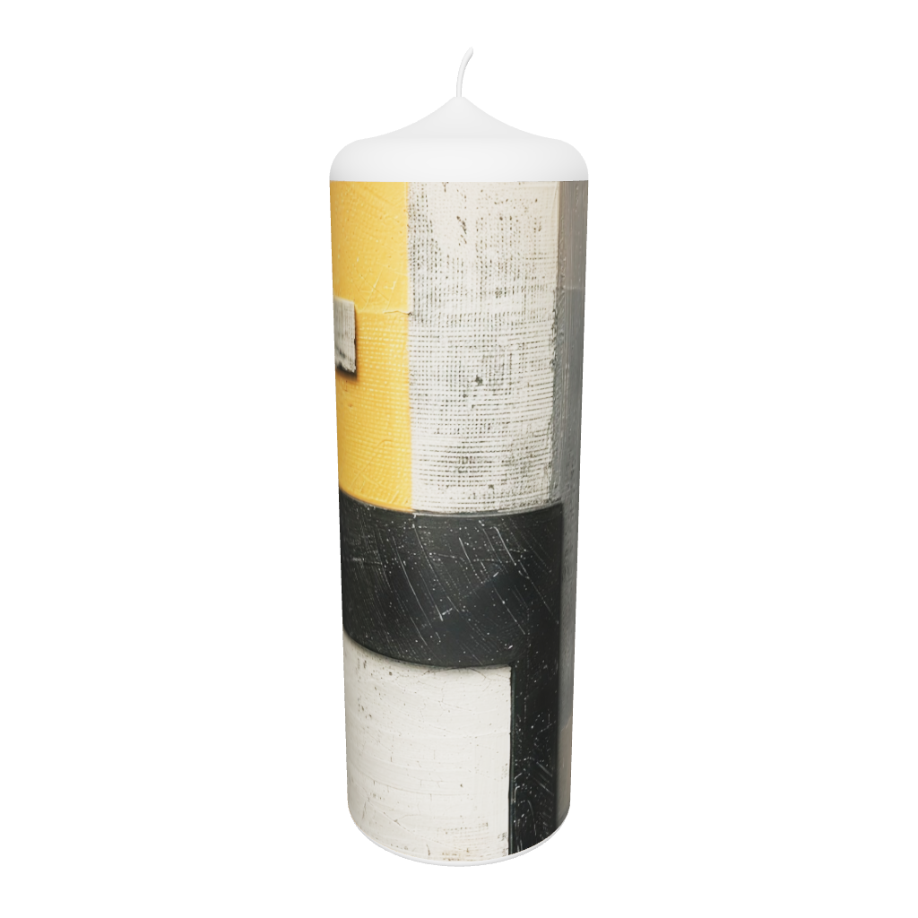 Diese Künstlerkerze zeigt das Motiv „Struktur Balance“. Die Kombination aus klaren geometrischen Formen und natürlichen Strukturen schafft ein ruhiges Gleichgewicht. Erdige Töne in Beige, Schwarz und Ocker verleihen der Kerze eine schlichte, zeitlose Eleganz – perfekt für moderne, reduzierte Wohnräume.