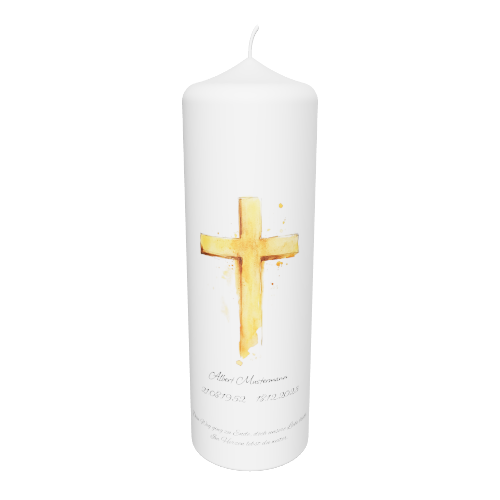 Trauerkerze Goldenes Kreuz Aquarell – würdevoll & leuchtend