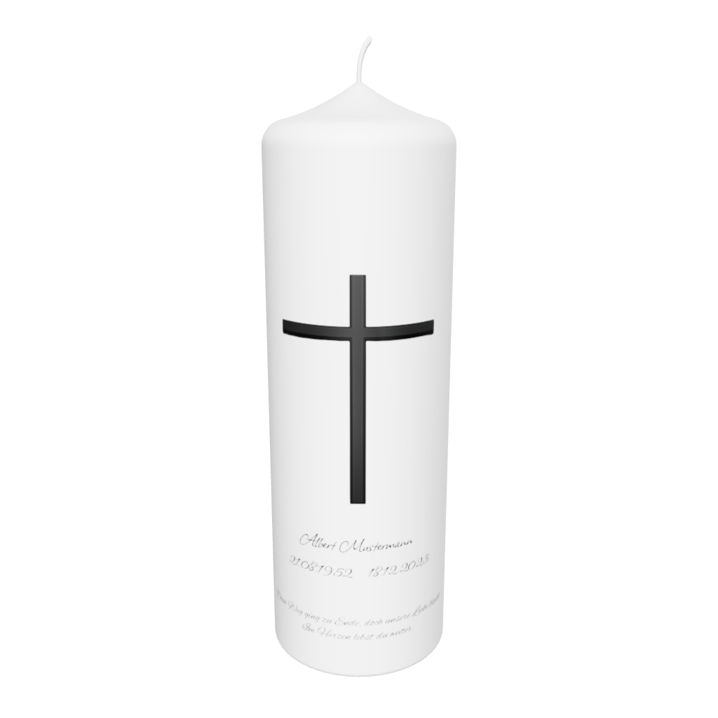 Die Trauerkerze „Langkreuz Klassik“ vereint zeitlose Schlichtheit mit tiefer Symbolik.