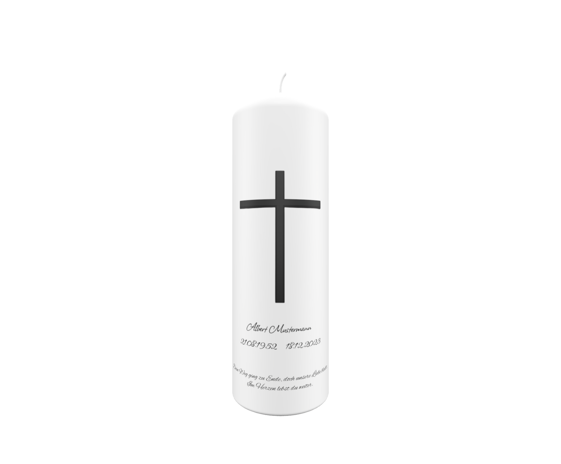 Mit der Personalisierung von Namen, Lebensdaten und einem individuellen Spruch wird sie zu einem ganz persönlichen Erinnerungslicht.